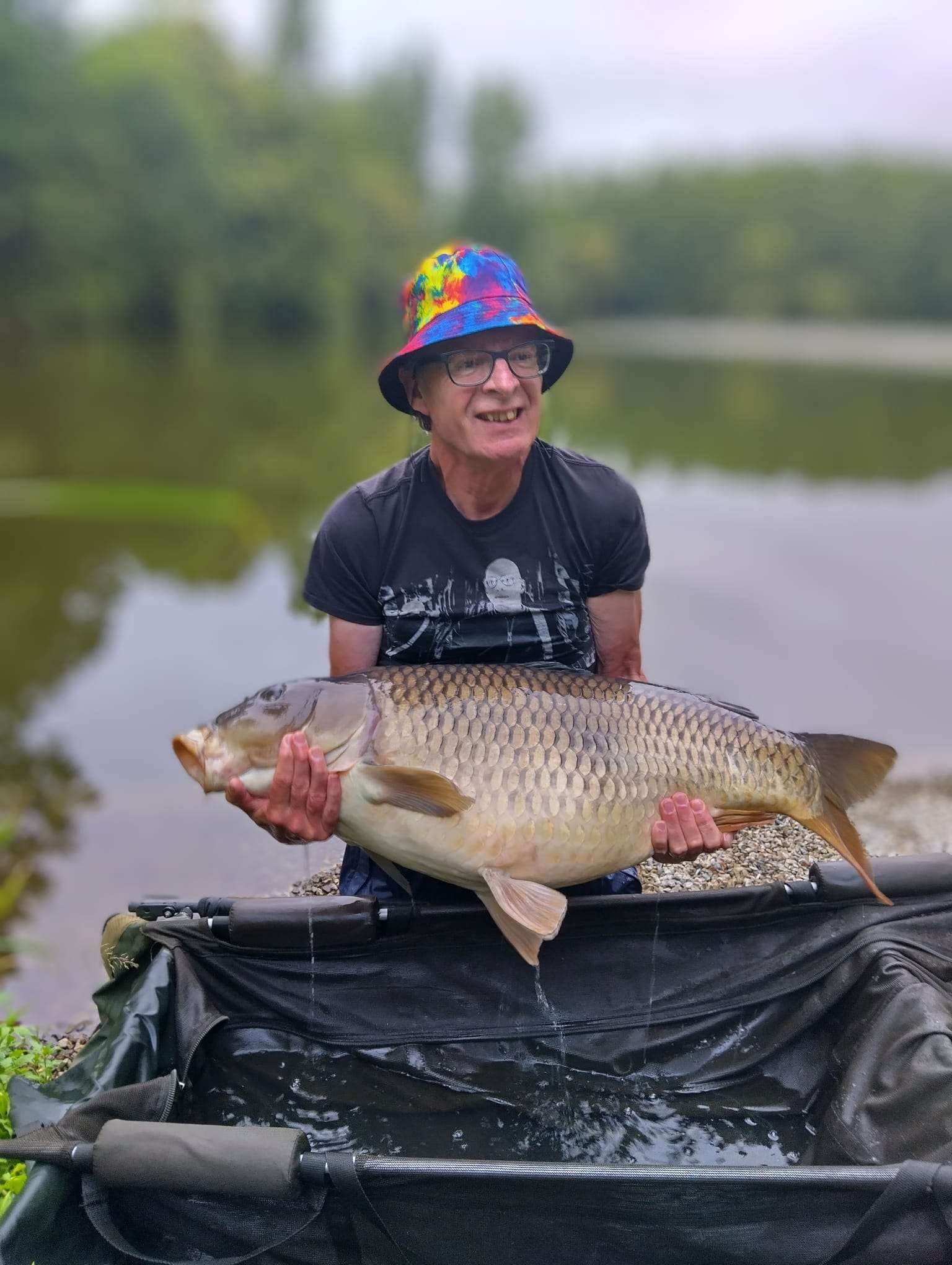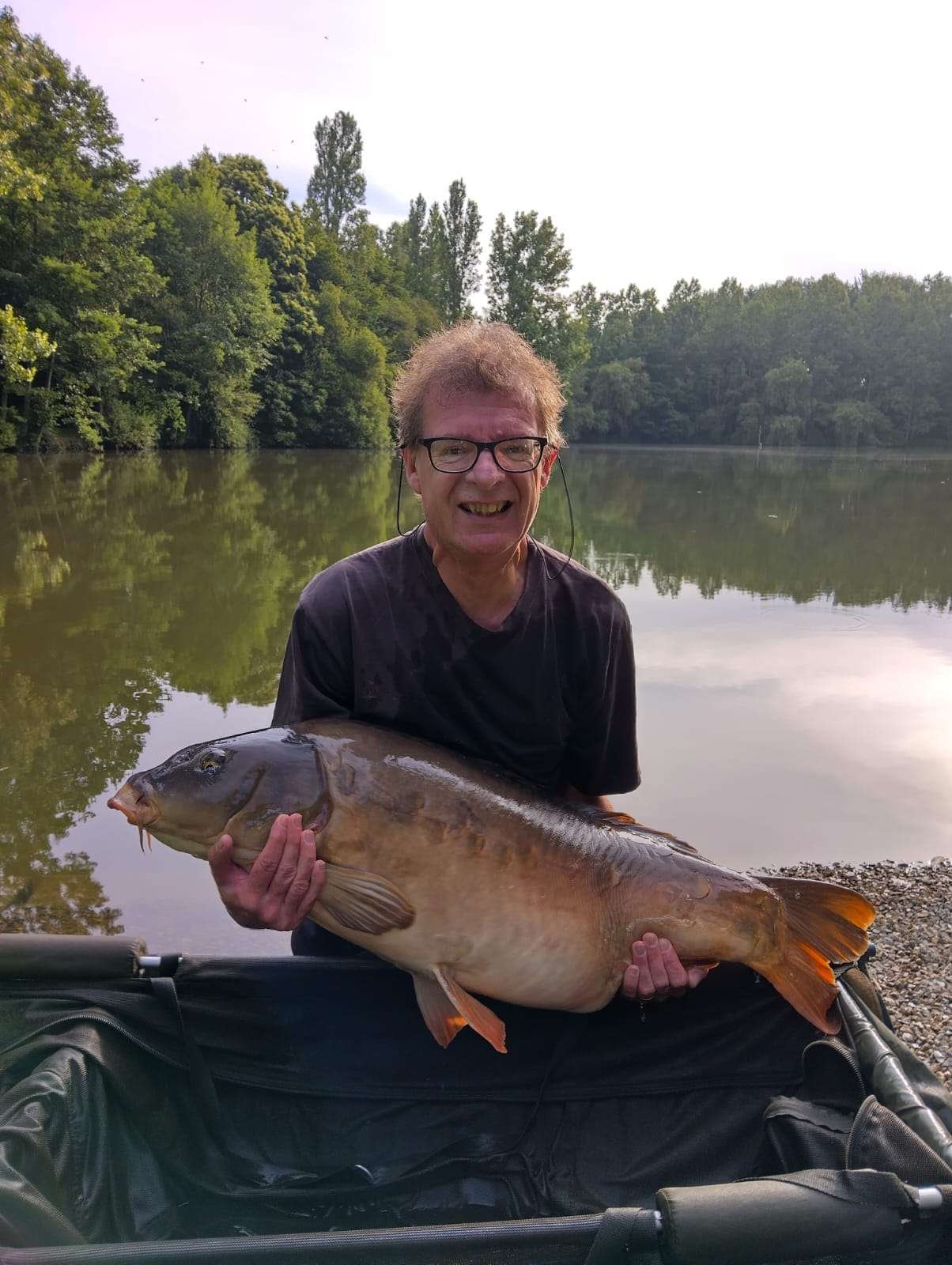 This is the second time we have had the privilege of fishing at Etang Hirondelle. This time last year the fishing was exceptional. In a 2-week period I managed to catch 72 carp with the biggest 62 lb. After a leisurely start to the fishing on Sunday morning I had a take after only 5 minutes. This resulted in a 49 lb mirror carp. 30 minutes later I had another take. This time a 41 lb grass carp. To say I was happy is a bit of an understatement. In summery by the end of 2 weeks I had caught 100 carp and 6 sturgeon. I have never experienced fishing that good. My biggest carp being 64 lb -a personal best. The sturgeon averaged 37 lb. One of the highlights was catching a 53 lb mirror carp only to have my second rod rip off. Glen was chatting in the swim at the time, so I suggested that he grabbed the rod. This he did which resulted in a 40 lb mirror carp. The fishing slowed a bit in the third week, so my total number of carp was 119 for the 3 weeks. However, during the third week I caught a 66 lb mirror carp -another new personal best. The carp all fight exceptionally well, unlike most other commercial fisheries. The sturgeon fought even more. I did not fish any nights. I had resisted walking around the lake as I hadn’t wanted to disturb the carp. Nearing the end of the holiday I ventured to the end of the lake when the sun was at its hottest. I can only say it was like visiting the Jurassic Park of Carp basking in the sun. I could only view this as fishing is not possible as no swims or access to the water is possible there. The lake is actually a mixed fishery and has a sizable head of crucian carp, pike, roach and other species. I caught a 5 lb crucian carp. Carp cradles, retainer slings, and even sun loungers are all provided. In addition to the fishing the gite and facilities were faultless. The pool is worth a dip in the hot weather. This is beginning to sound like a 5 star Amazon review. Thats because I would recommend Etang Hirondelle to couples who enjoy fishing in beautiful surroundings. Just make sure that you get up early enough to hear the bird song being drown out by the cacophony of frogs. Something I missed most days. Look out for Mr and Mrs Moorhen and their new family of chicks, and the numerous kingfishers, one of which sat on my rod for a minute or two. Thanks to Glen and Linda for an excellently well-run fishery. I am already counting the weeks down to our next visit-49 weeks to go!